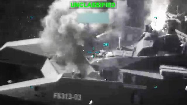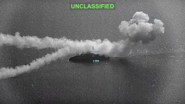 美军瞄准系统记录下了,伊朗沙希德·赛义德·希拉齐号双体导弹舰的最后一幕。伊朗水兵在最后时刻打出了一枚导弹。
