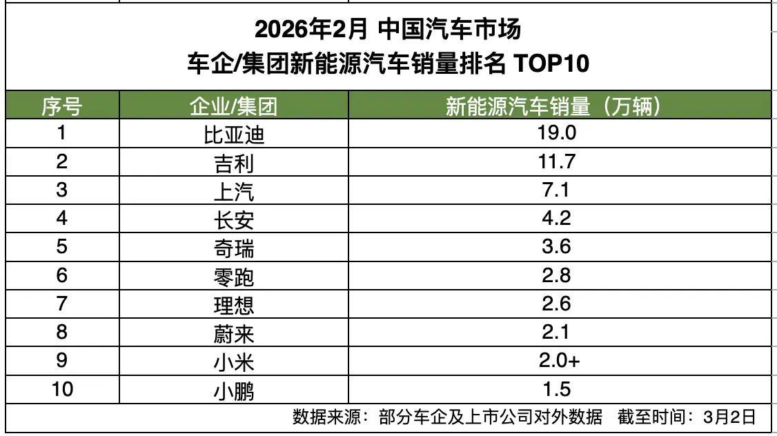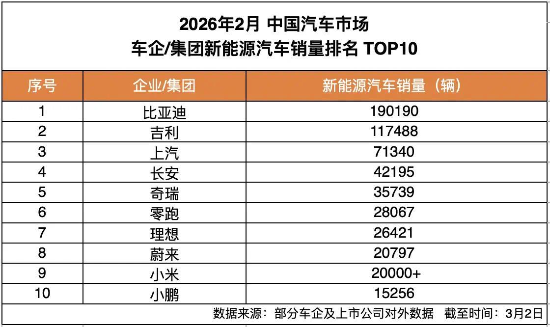 2026 年开年,中国新能源汽车市场的竞争格局愈发清晰。根据车企及上市公司对外披露的数据,比亚迪在新能源汽车领域继续保持着领先地位。