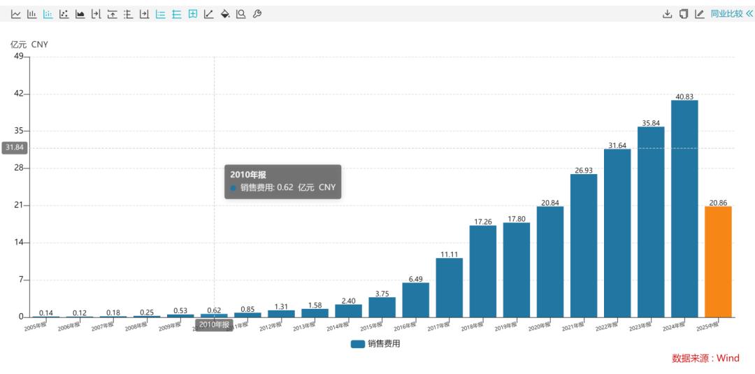 根据半年报拆解销售费用明细来看,职工薪酬、广告宣传和外包服务费占据公司销售费用的大头,期内,员工薪酬8.69亿元,广告宣传费5.46亿元,外包服务费2.93亿元。